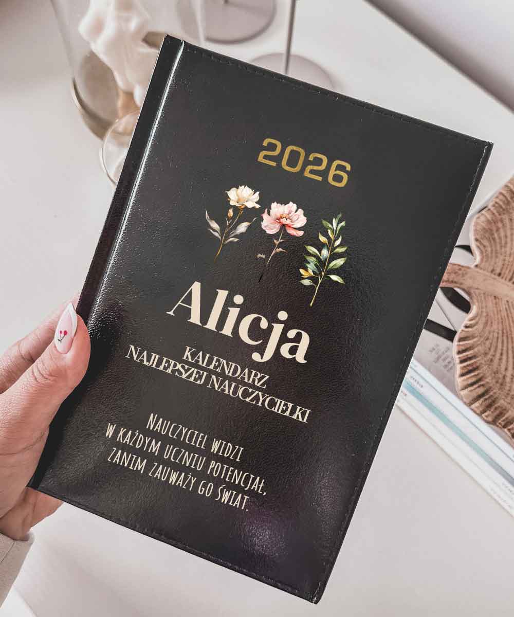 Kalendarz nauczyciela z personalizacją Delikatny wzór kwiatów