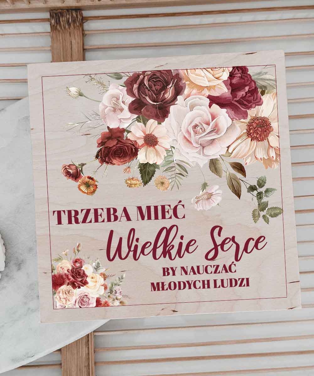 Personalizowane drewniane pudełko z życzeniami i zdjęciem – prezent na Dzień Nauczyciela