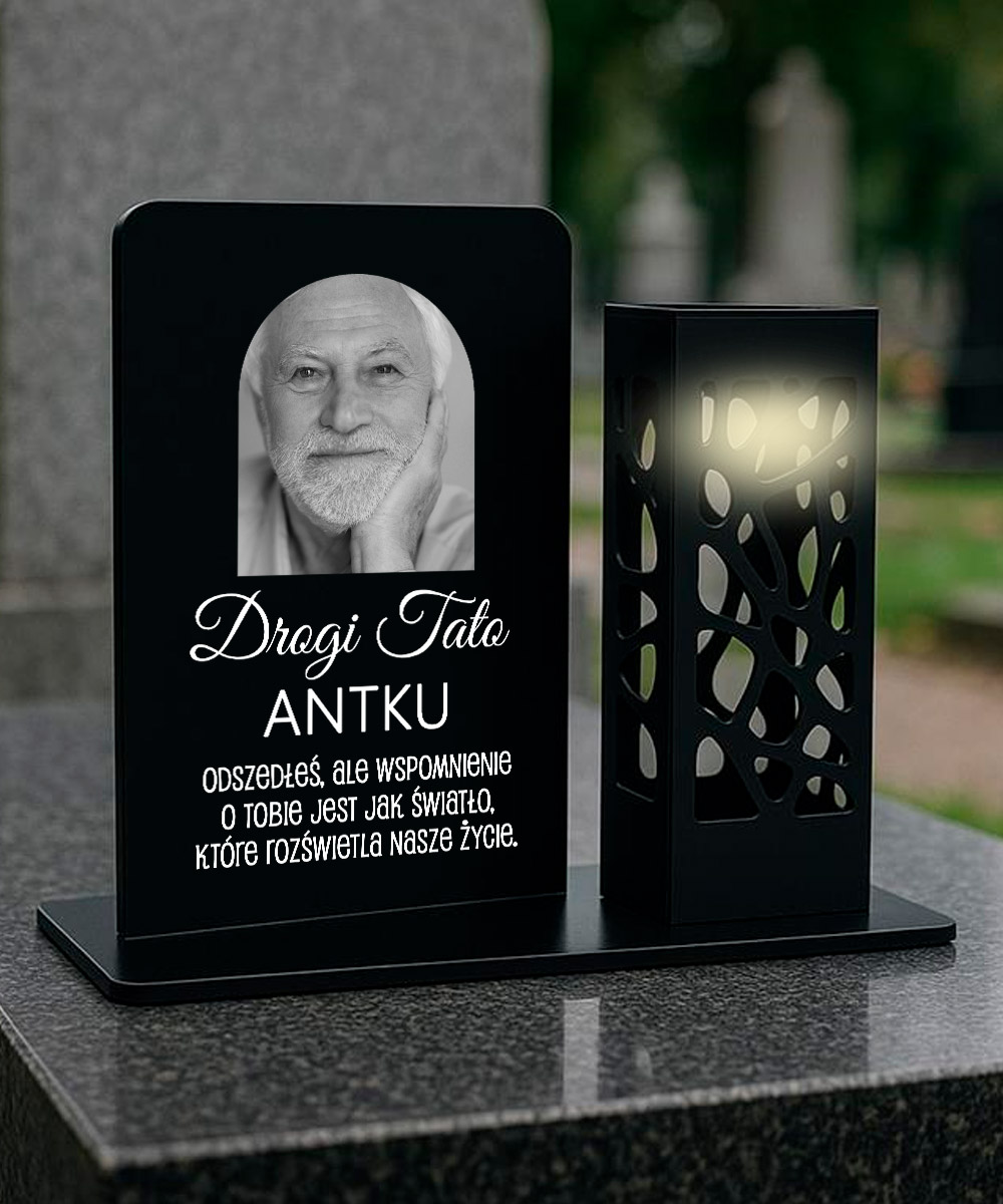 Personalizowany znicz lampion solarny ze zdjęciem na grób dla Taty