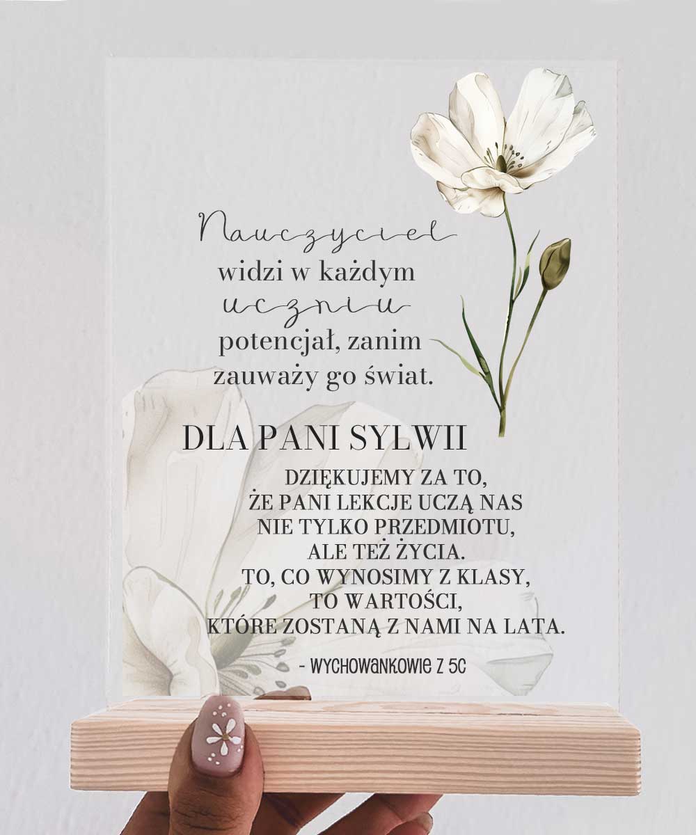 Prezent na Dzień Nauczyciela – statuetka z delikatnymi kwiatami i imieniem