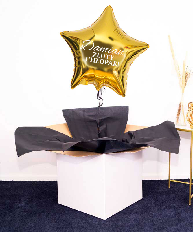 Złota gwiazdka balon – prezent w pudełku dla chłopaka z imieniem