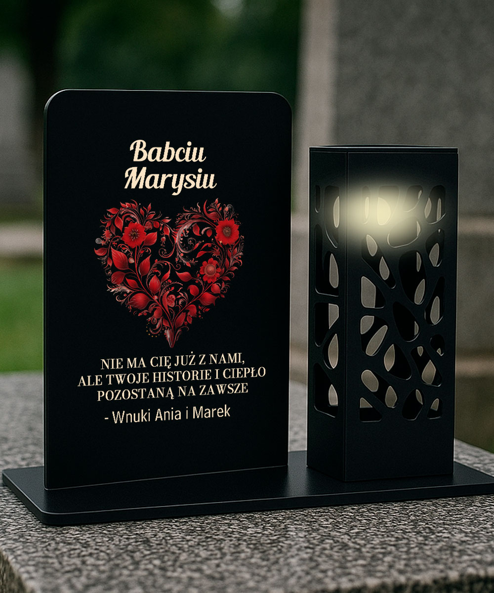 Znicz dekoracyjny z dedykacją dla Babci – Serce i Historie