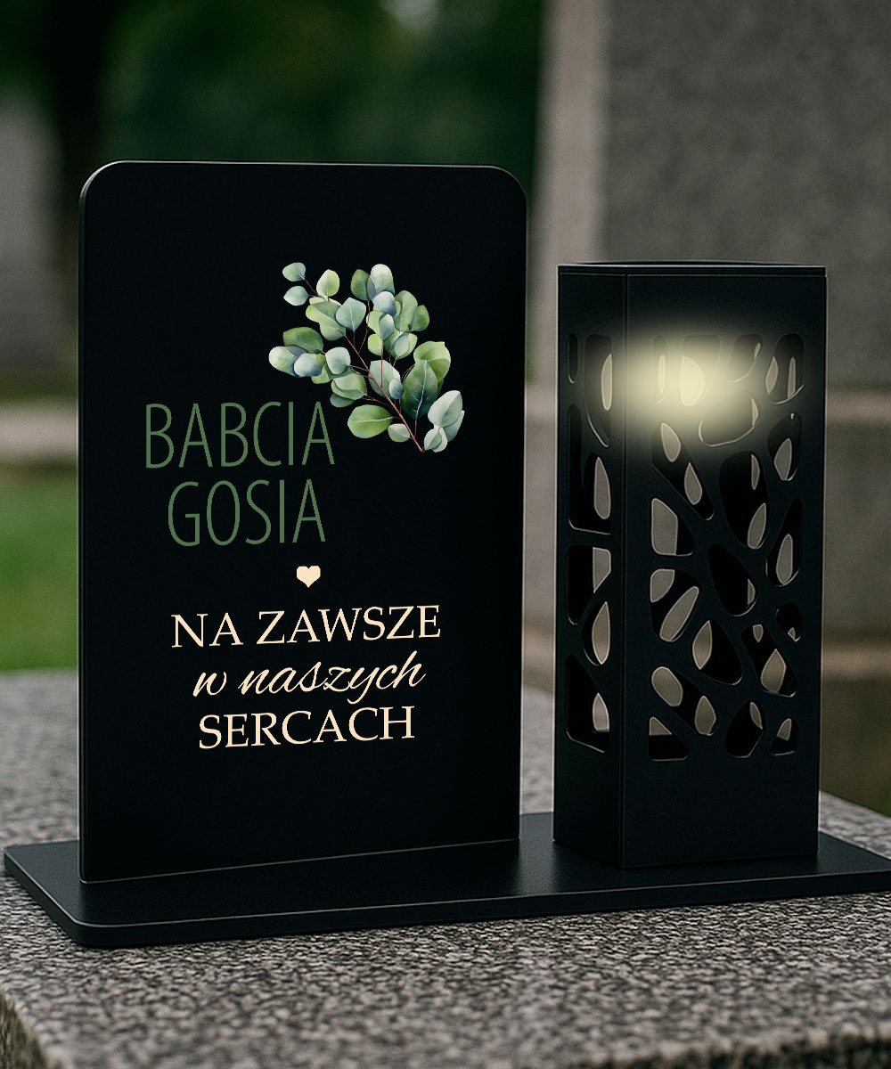 Zainwestuj w znicz LED z latarenką na grób dla babci – Eukaliptus, który łączy w sobie estetykę, funkcjonalność i osobisty akcent.