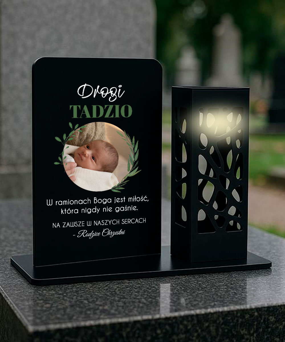 Znicz ze zdjęciem dla dziecka w formie latarenki Listki